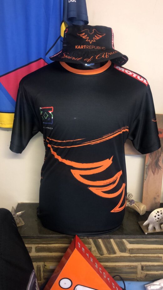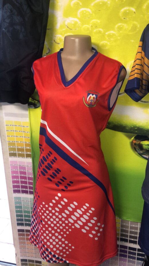 Dye sublimated t-shirts, bucket hats, golfers, long sleeve shirts. We also produce sublimated soccer kits and netball dresses.